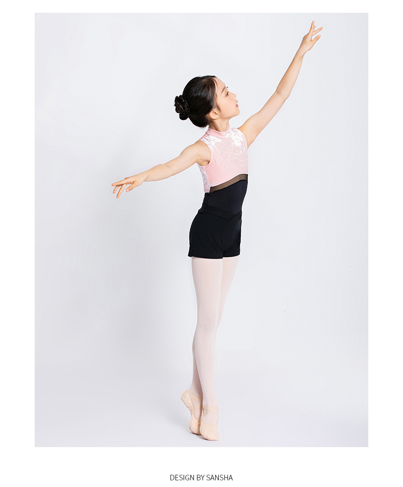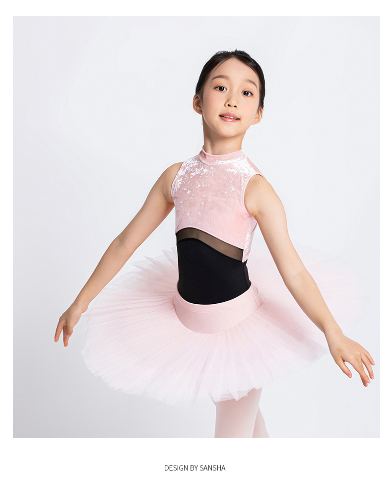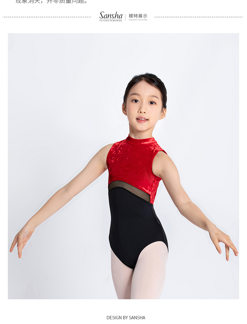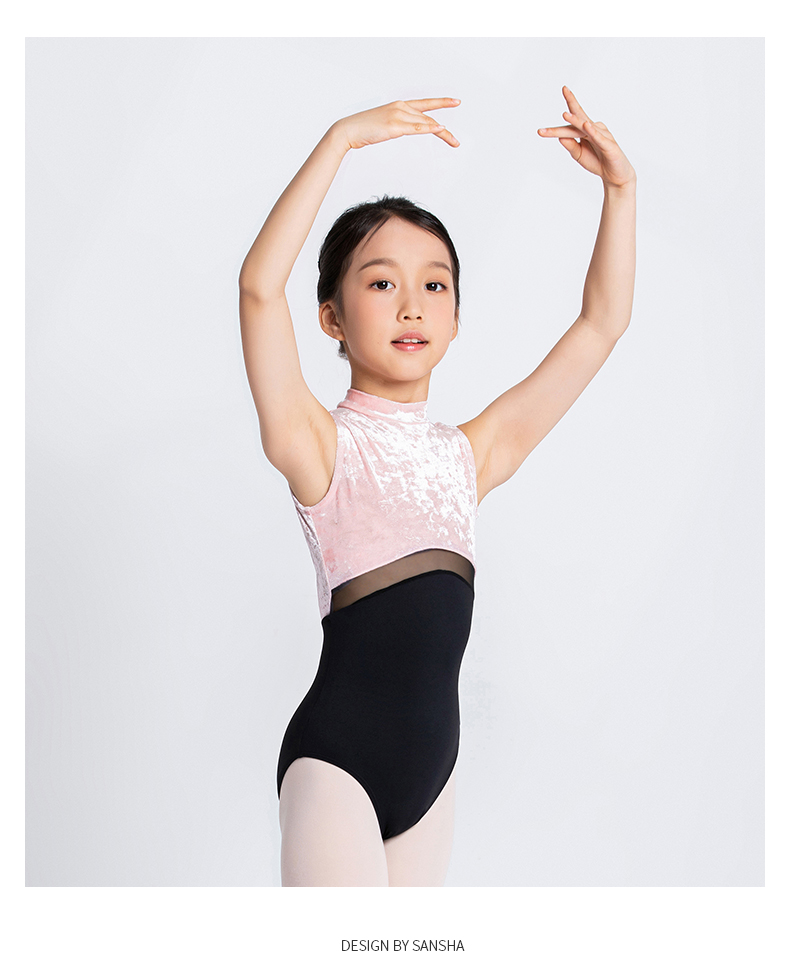 sanhsa 三沙儿童舞蹈连体服 钻石绒高领无袖芭蕾舞练功服开裆形体