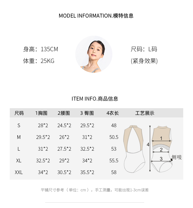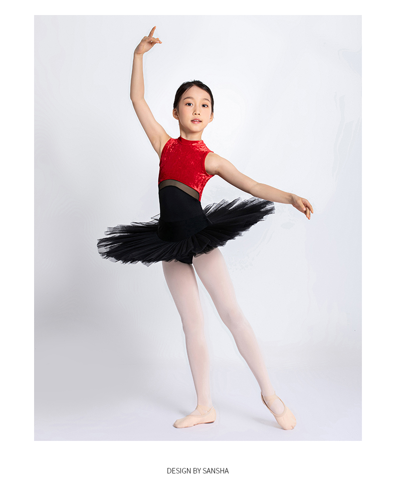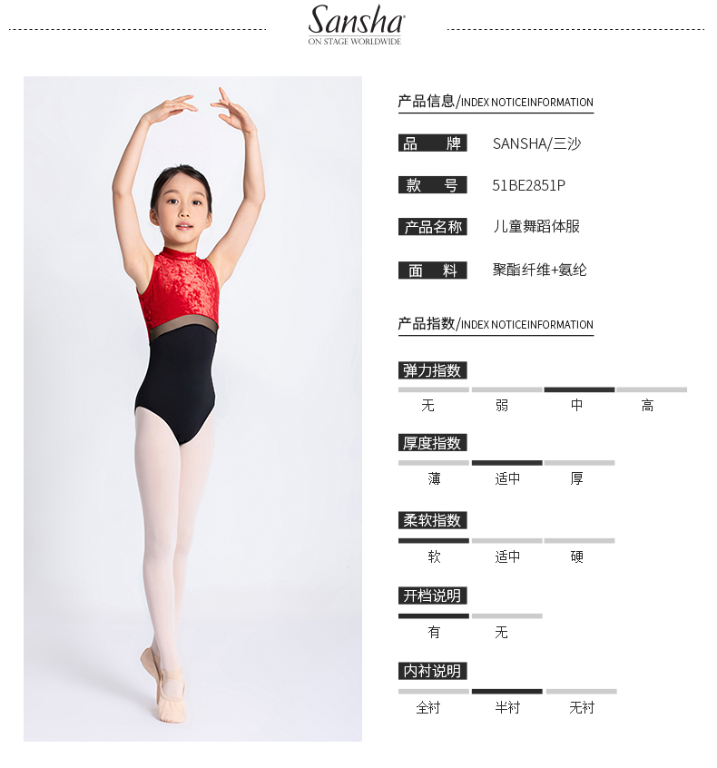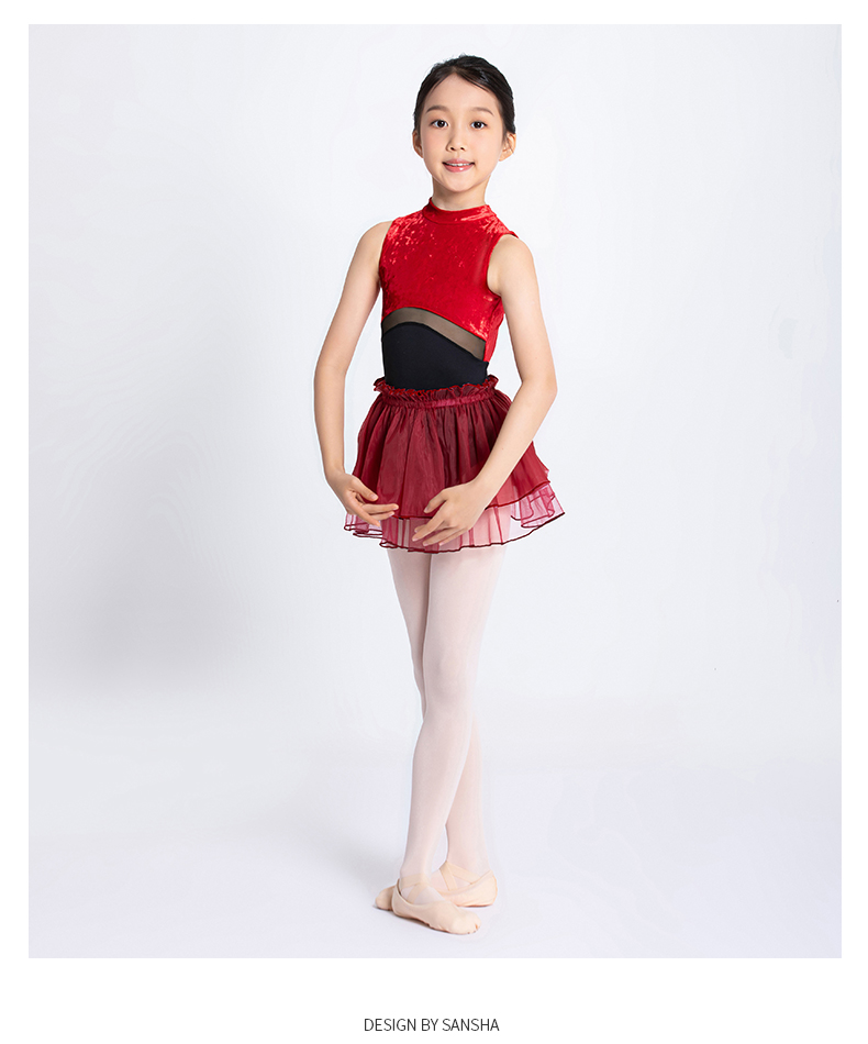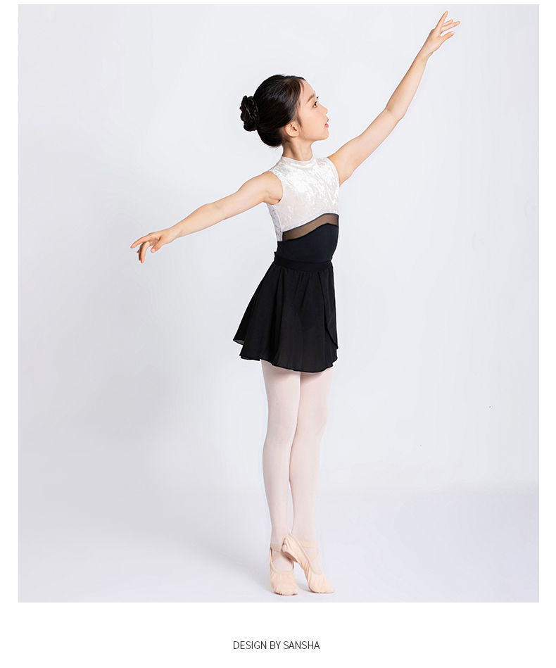 sanhsa 三沙儿童舞蹈连体服 钻石绒高领无袖芭蕾舞练功服开裆形体