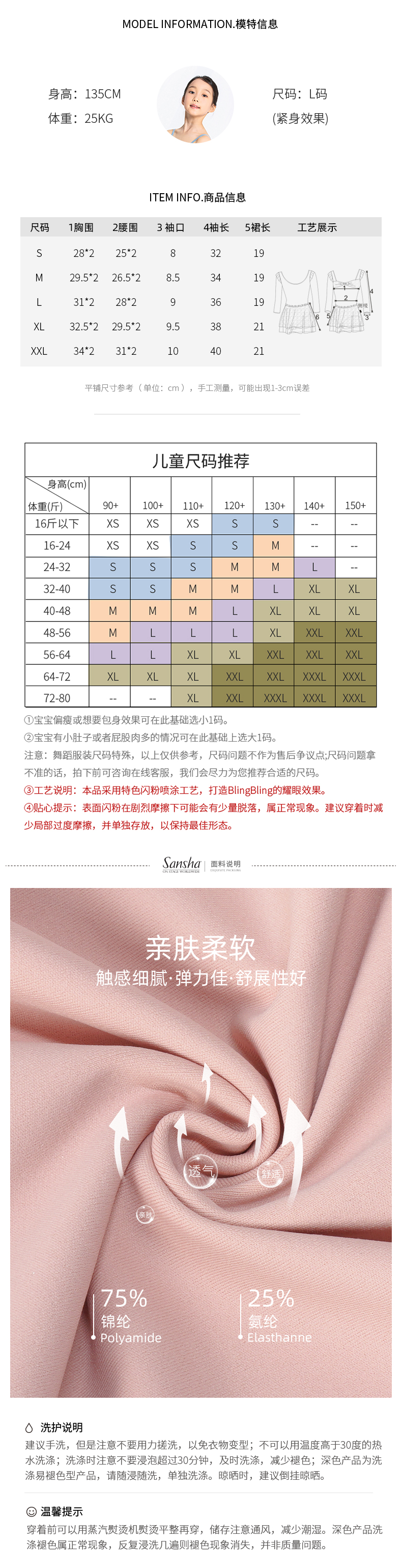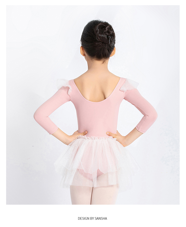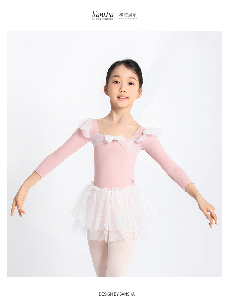 sansha 三沙儿童长袖舞蹈服女 秋冬芭蕾舞练功服蓬蓬裙连体服表演