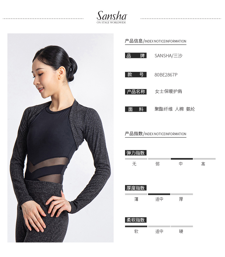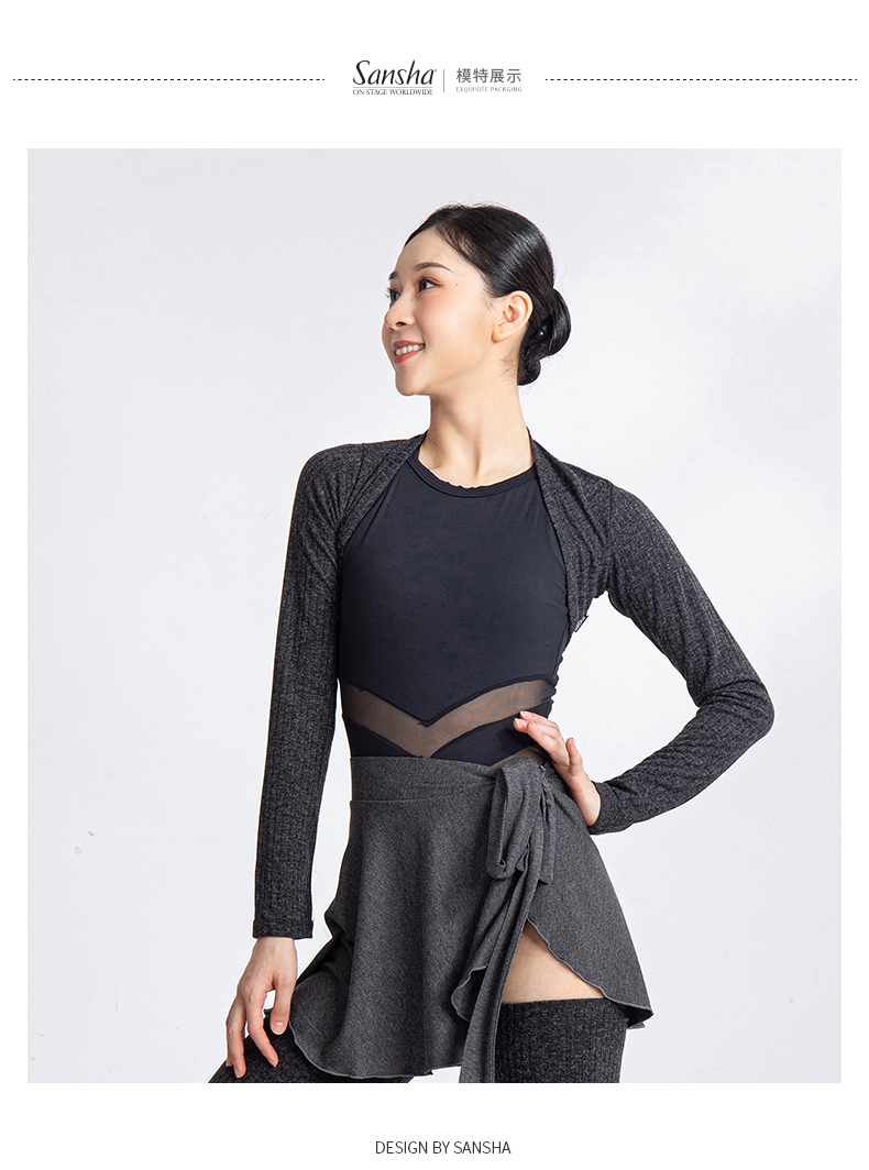 Sansha 法国三沙芭蕾舞外套女 保暖护肩舞蹈练功热身长袖短上衣