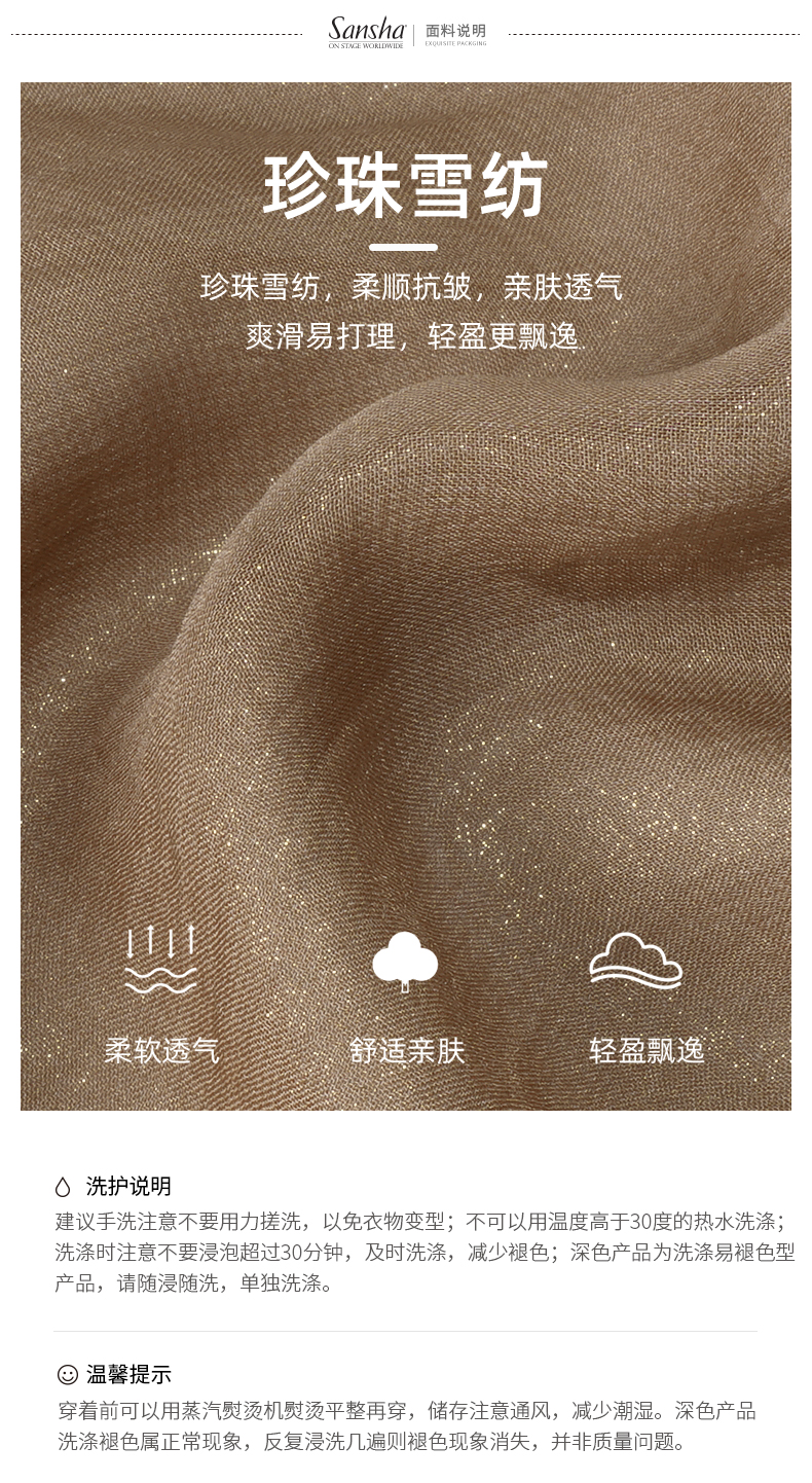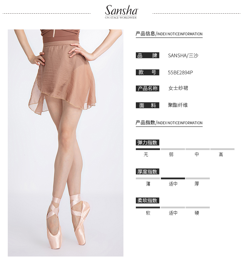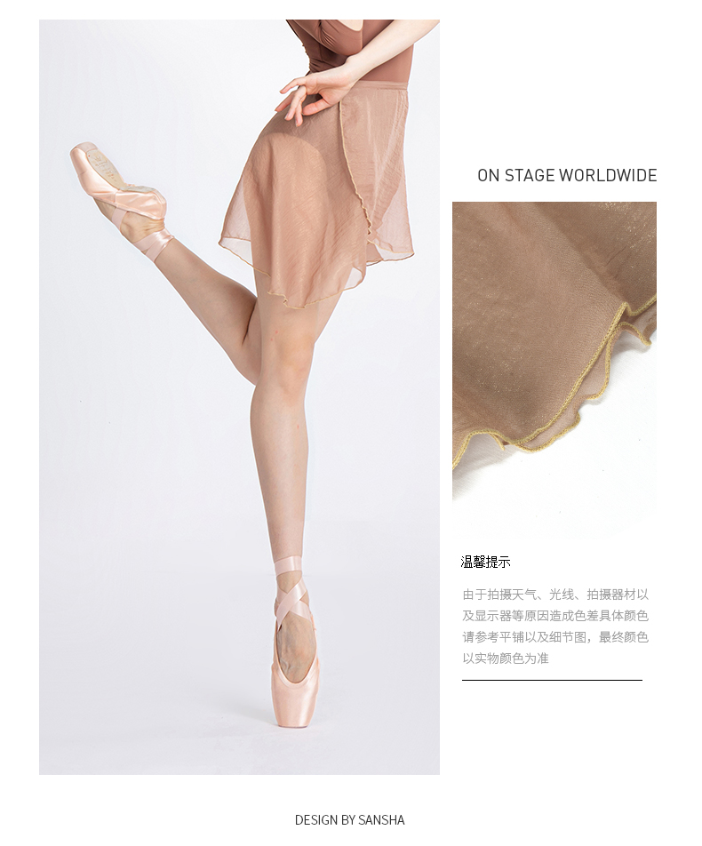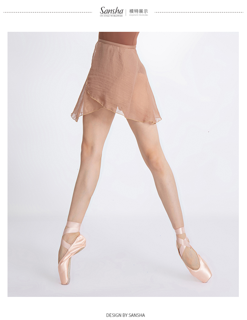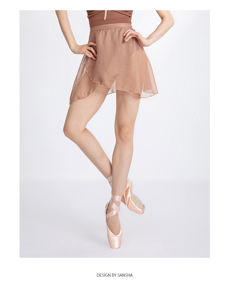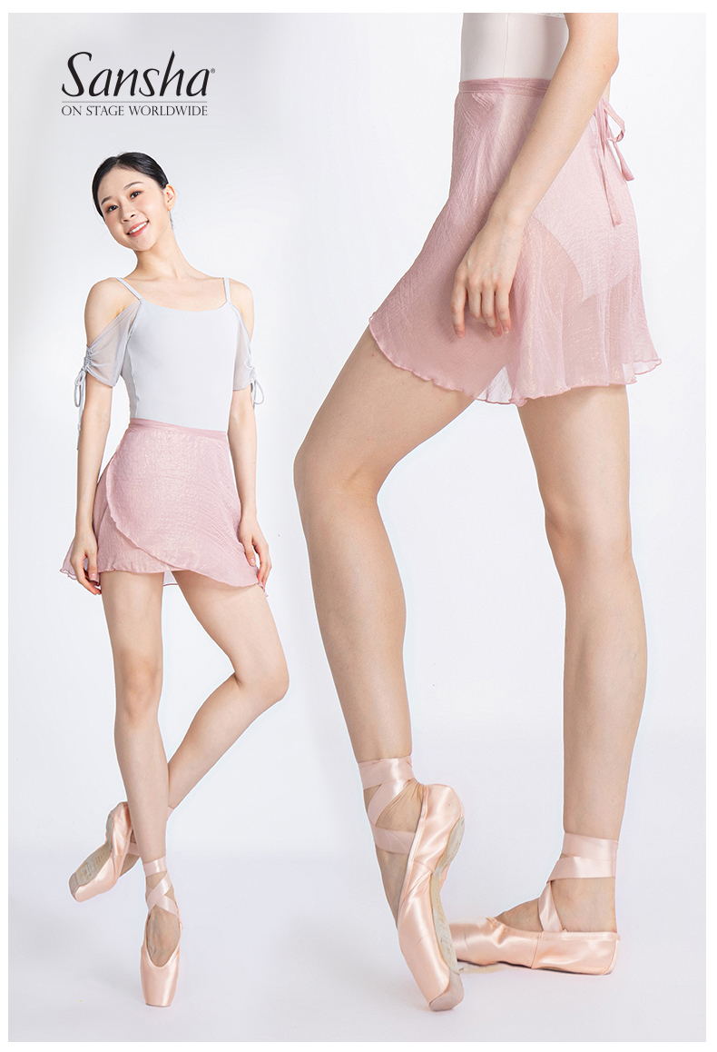sansha 三沙舞蹈半身裙女 系带雪纺裙珍珠光泽芭蕾舞练功裙短裙