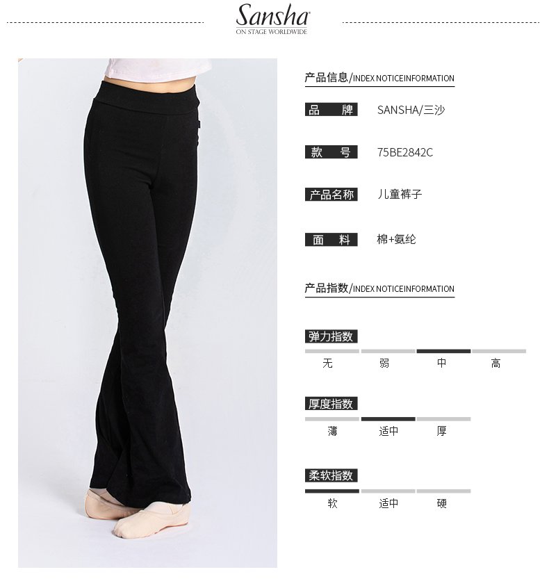 sansha 三沙儿童芭蕾舞蹈裤 中国舞练功裤微喇弹力长裤瑜伽形体裤