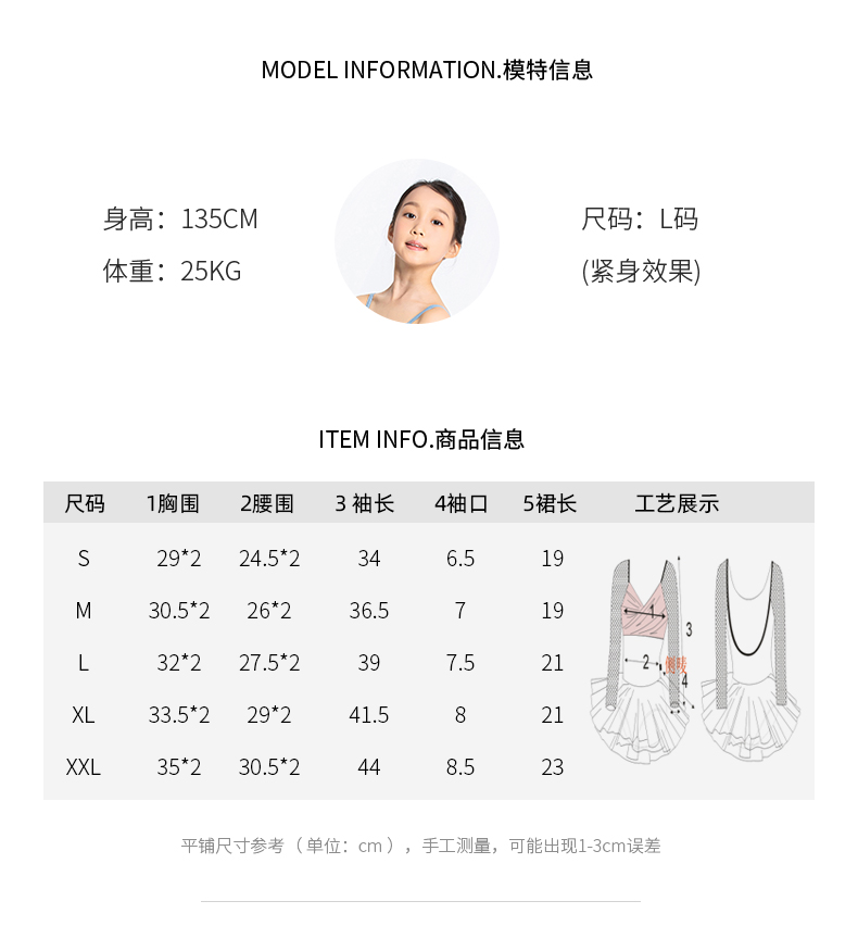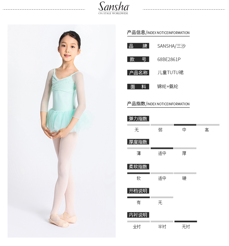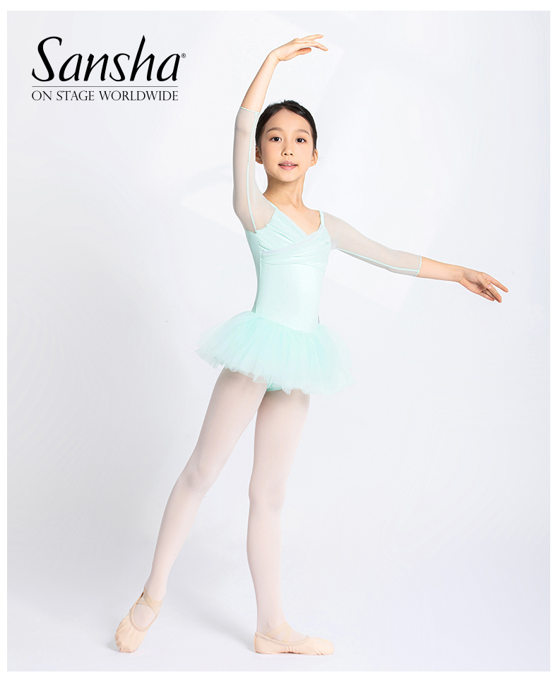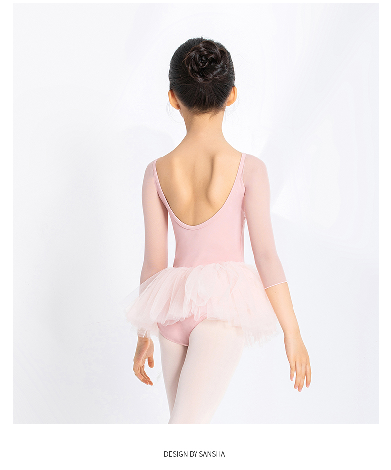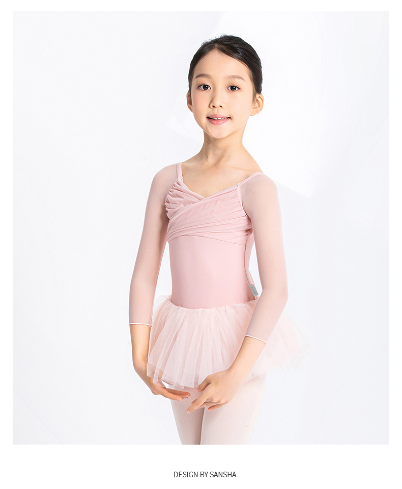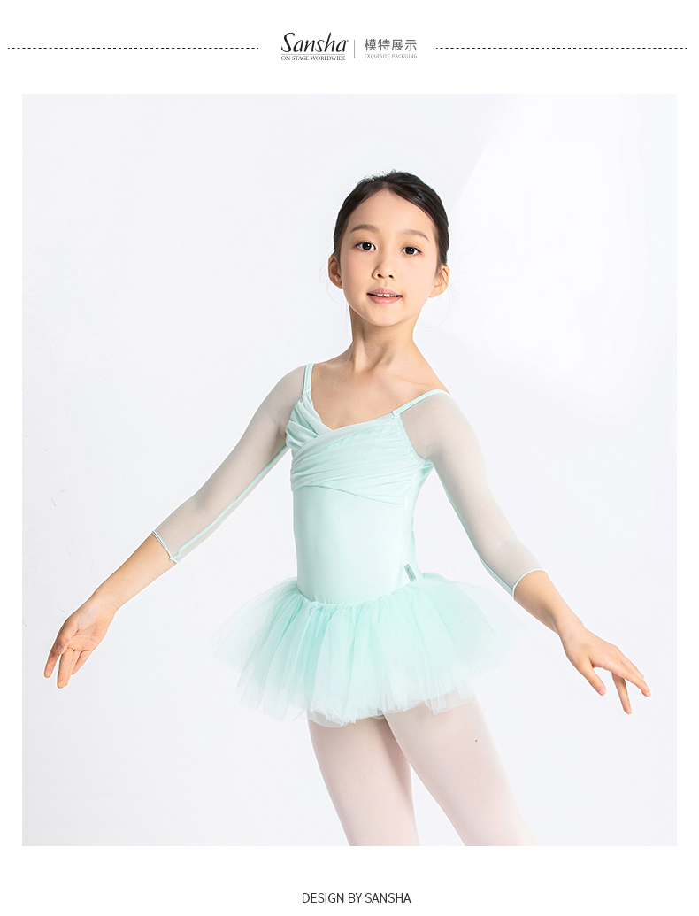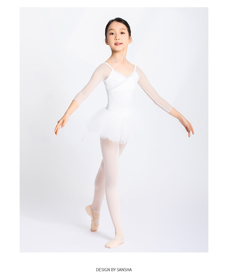 sansha 三沙儿童芭蕾舞裙交叉V领舞蹈连体服七分袖开裆蓬蓬裙表演