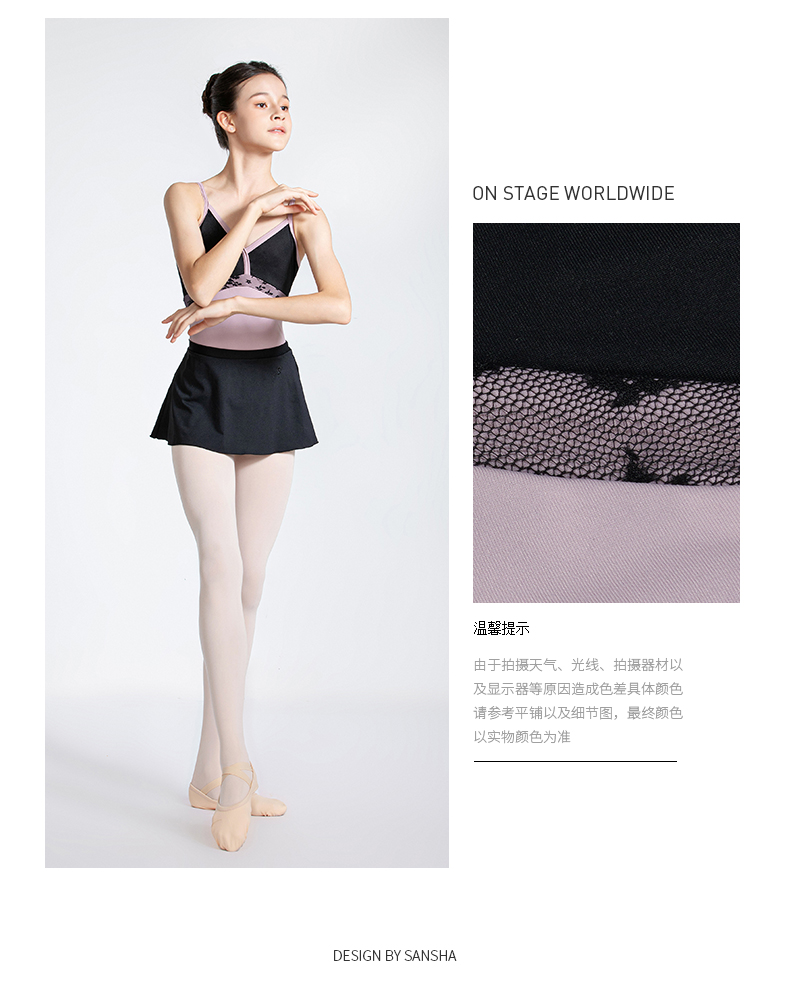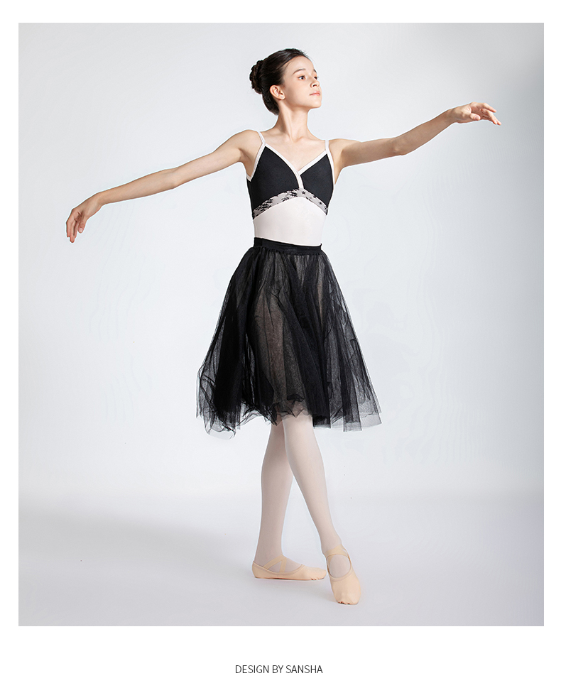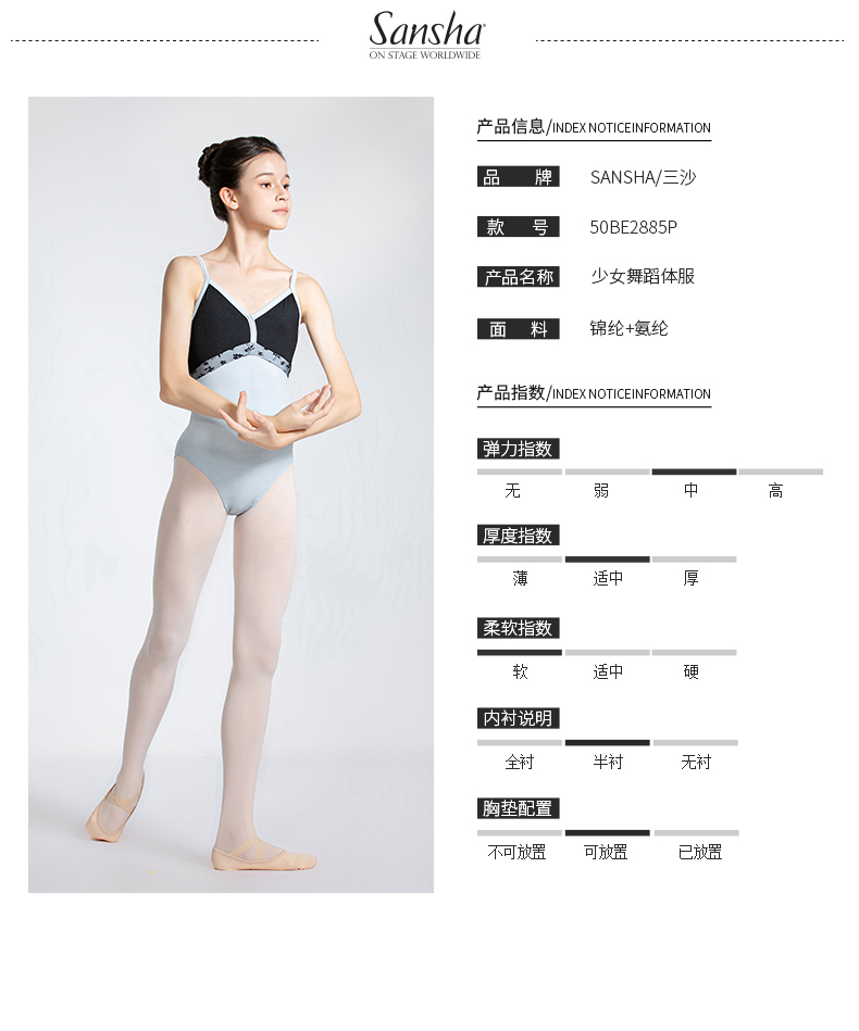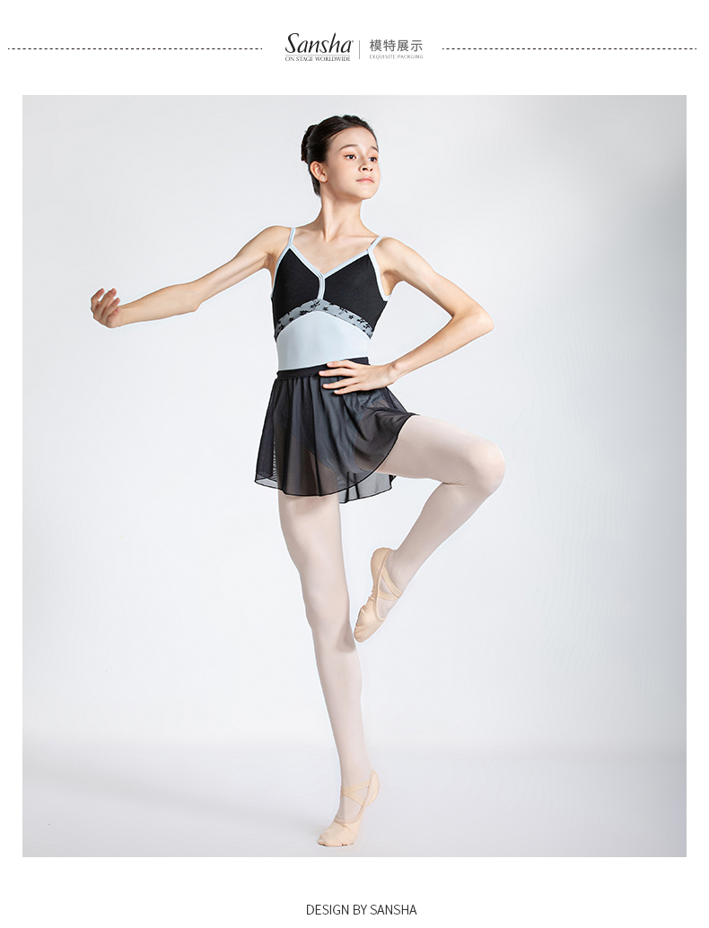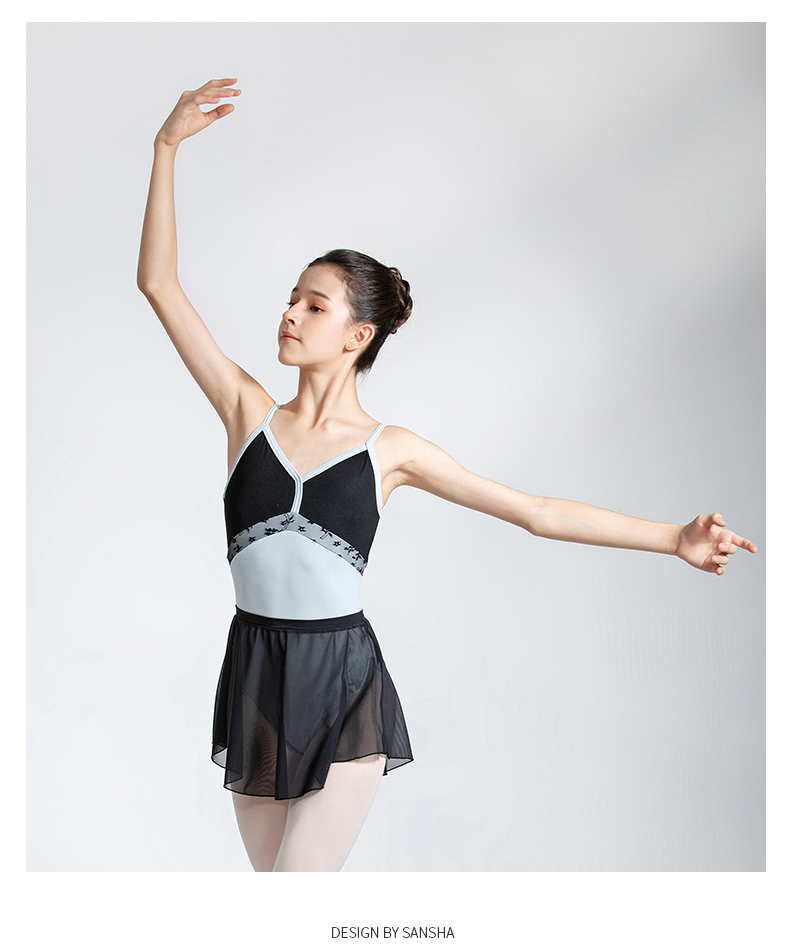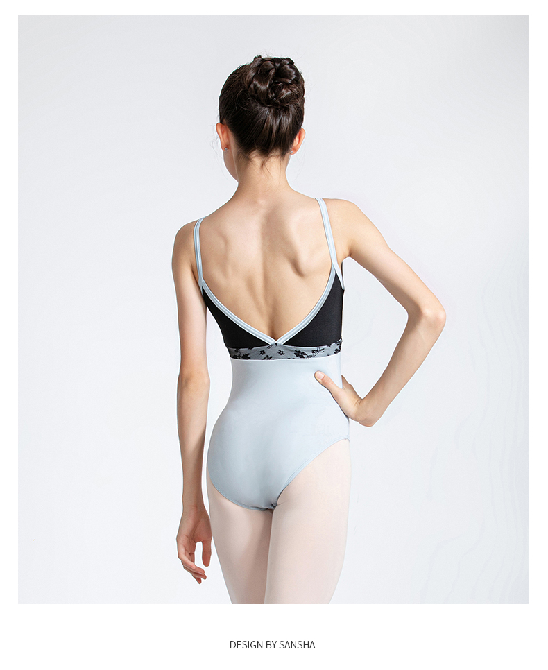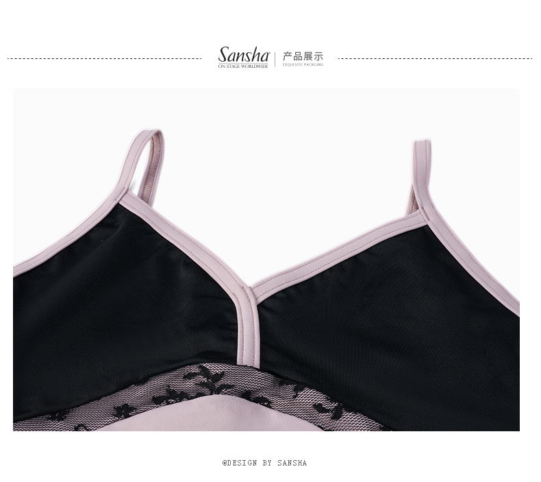 sansha三沙吊带撞色舞蹈服女 V领大背芭蕾舞练功服高胯连体服锦纶