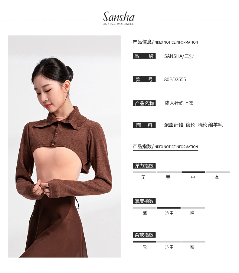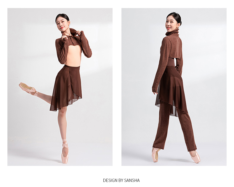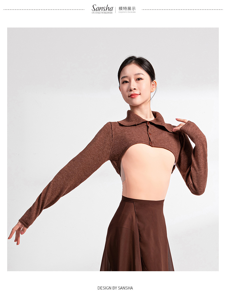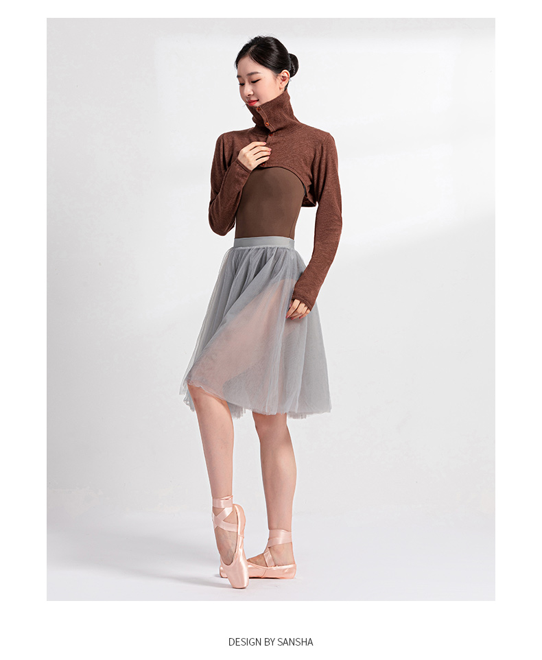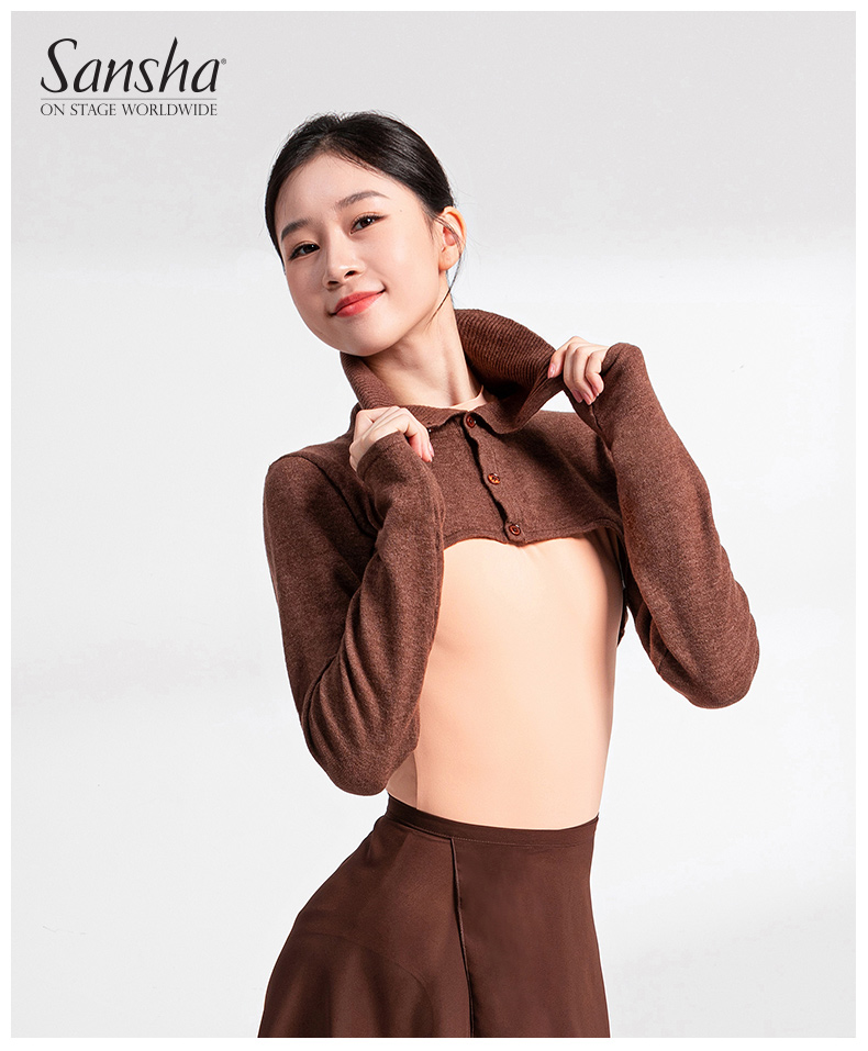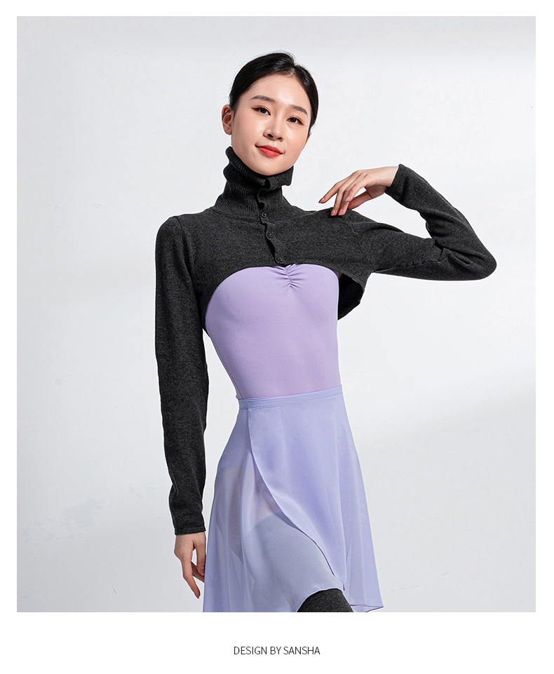 sansha 三沙舞蹈保暖外套女 芭蕾舞练功披肩高领长袖针织衫上衣