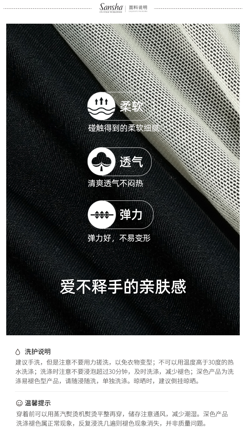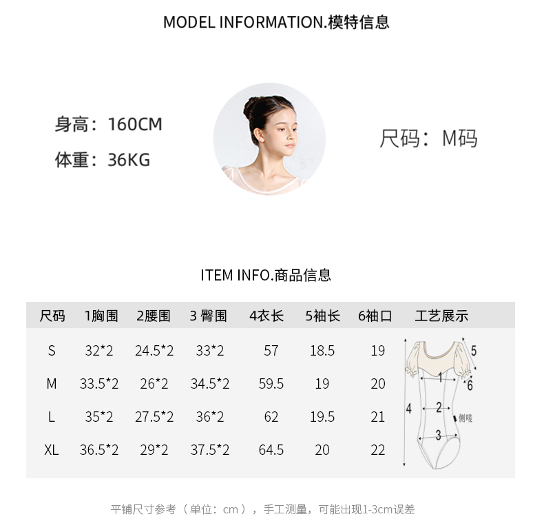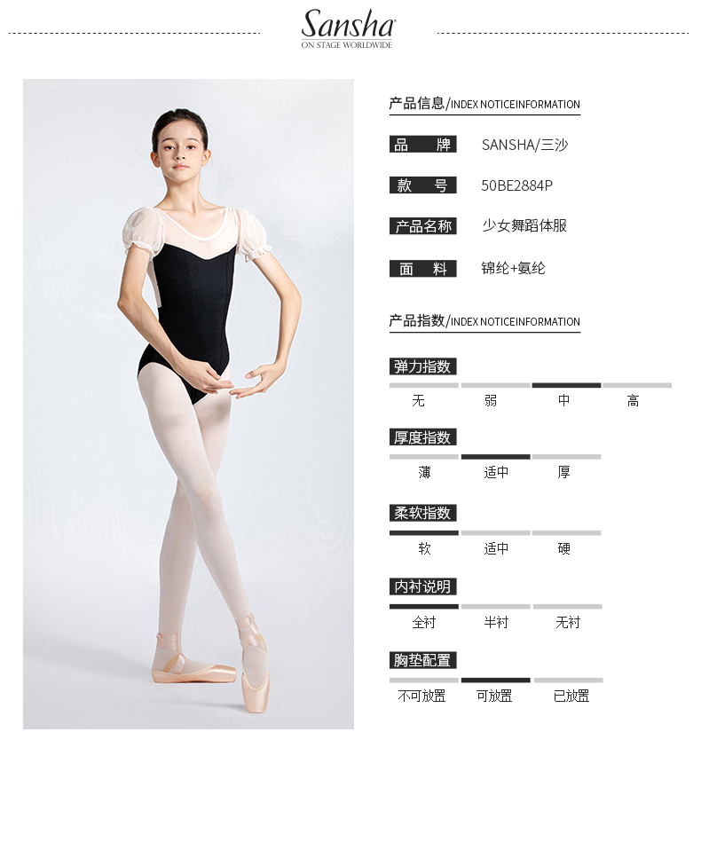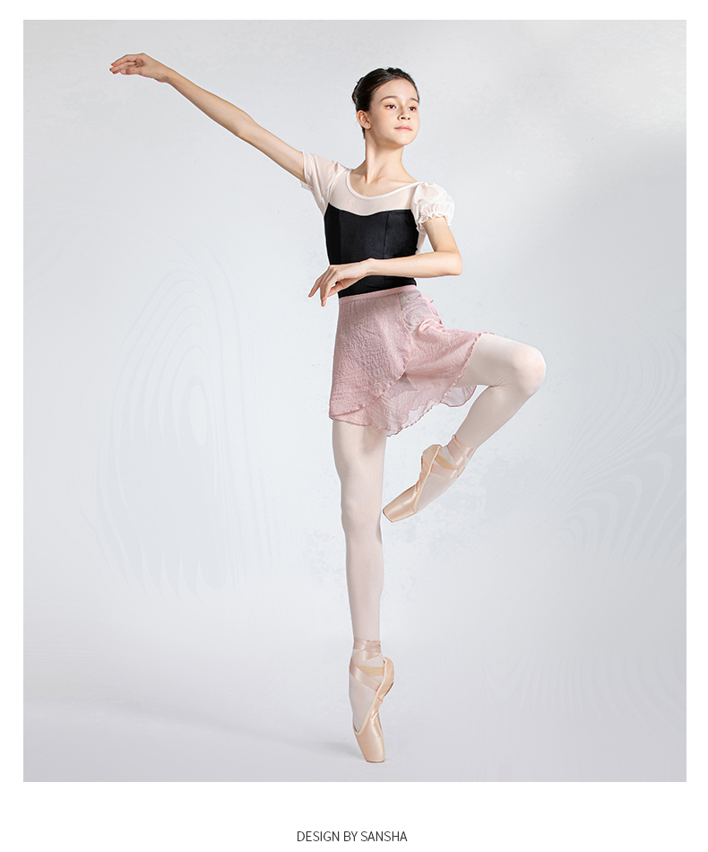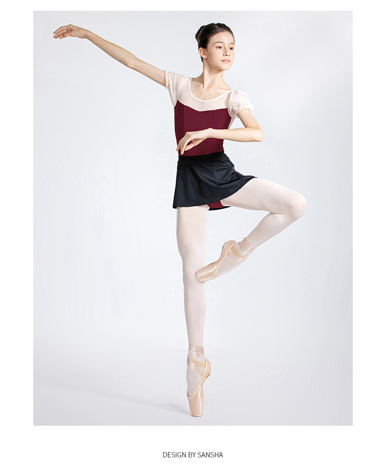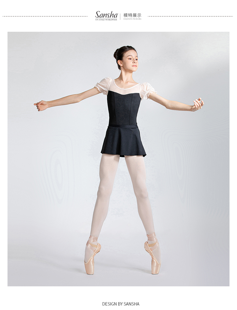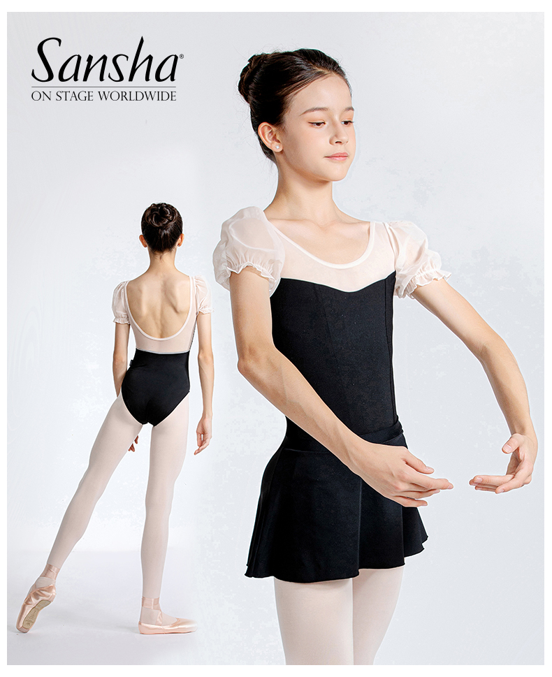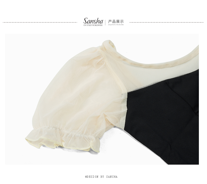Sansha 三沙舞蹈服女 网纱圆领连体服芭蕾舞练功服泡泡短袖表演服