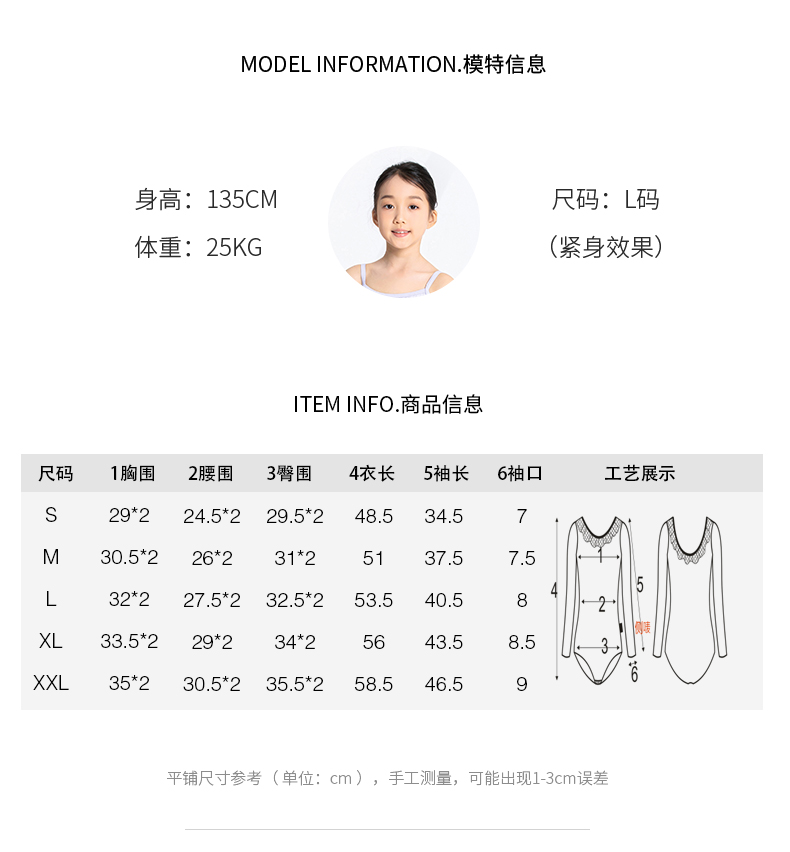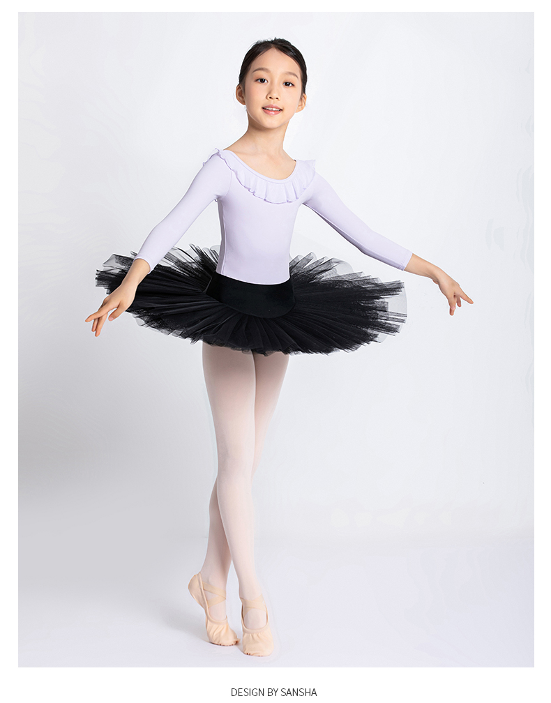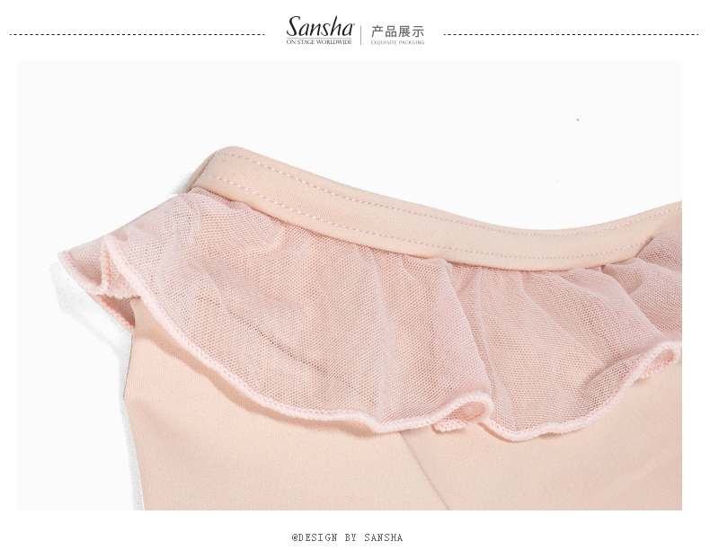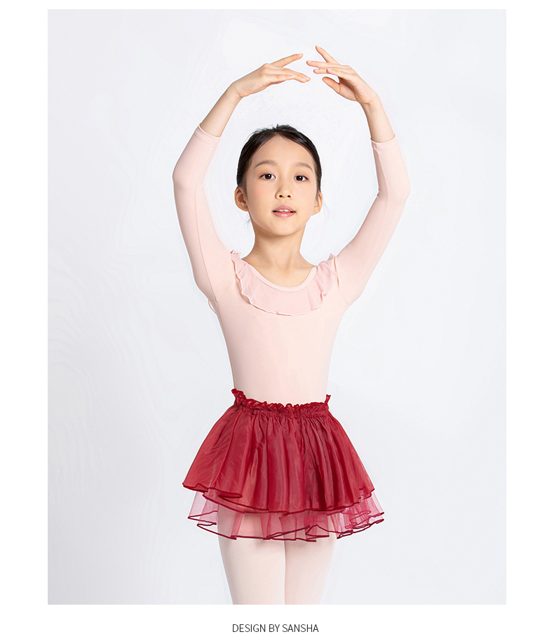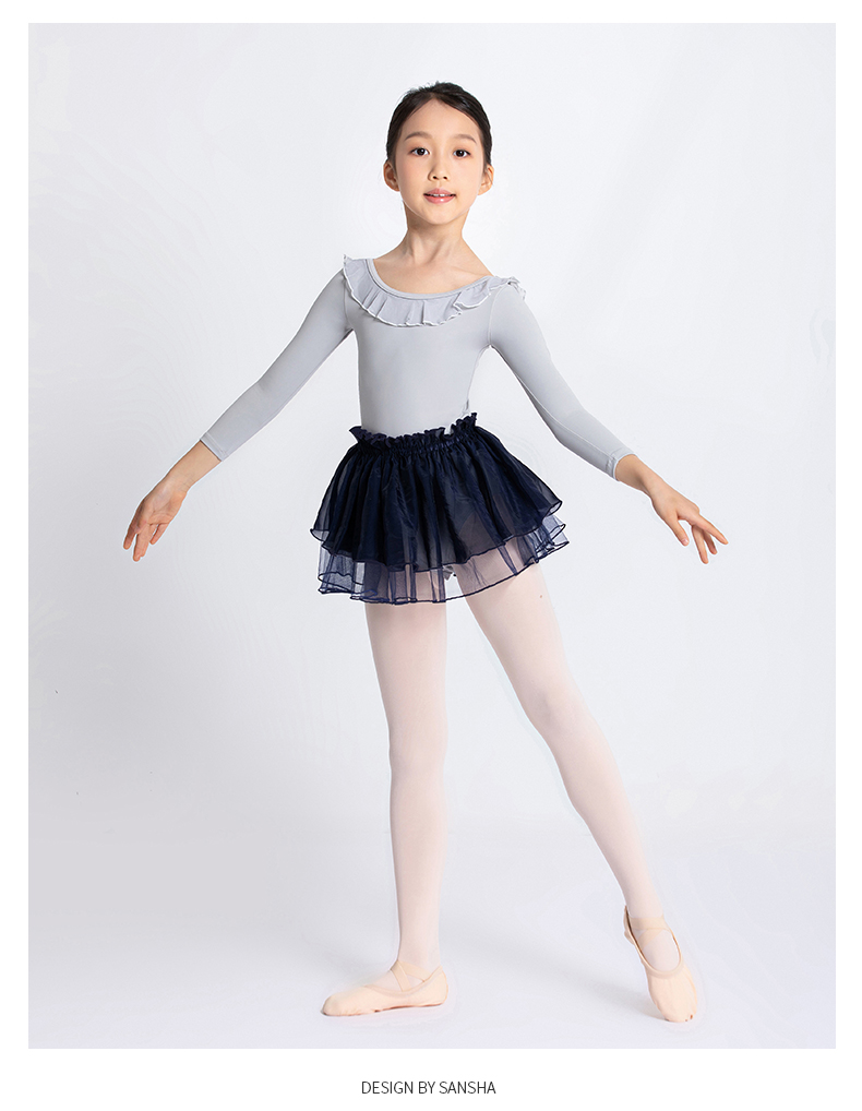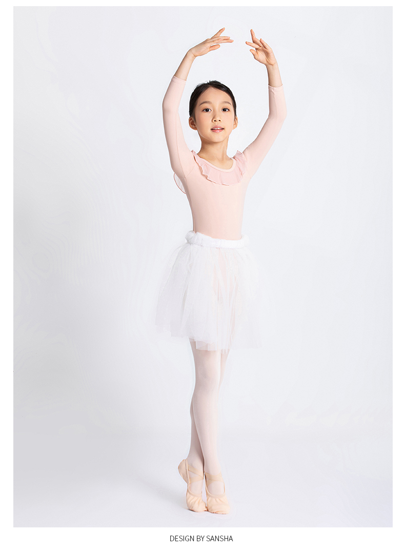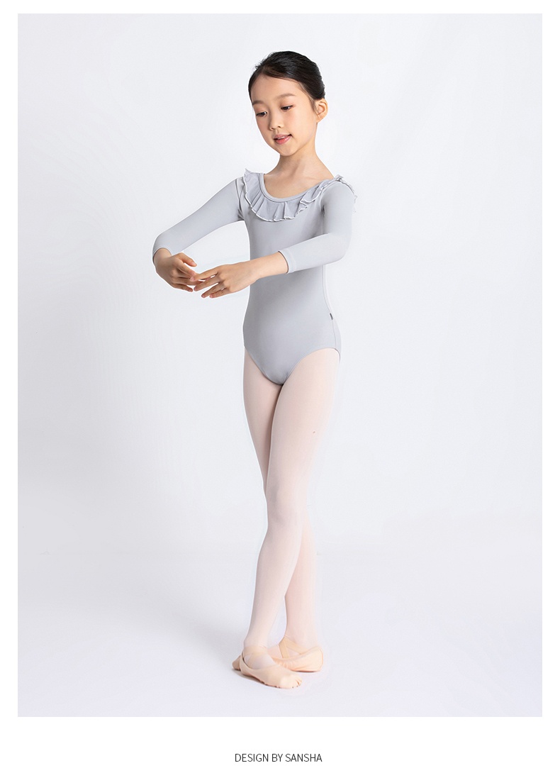Sansha 三沙儿童长袖舞蹈服女 芭蕾舞练功服圆领开裆连体服9分袖
