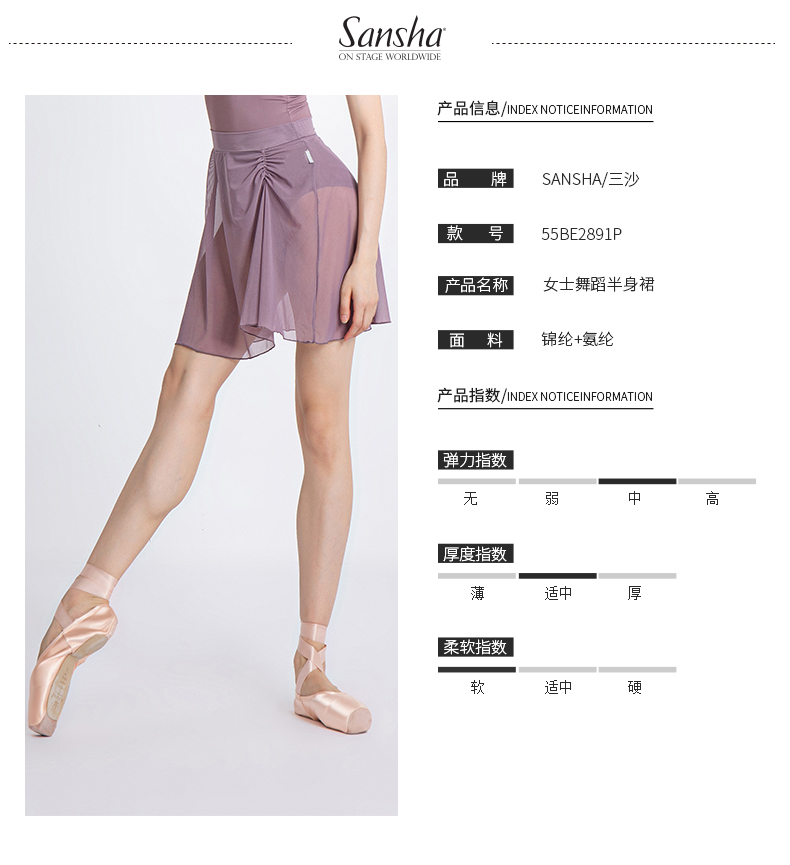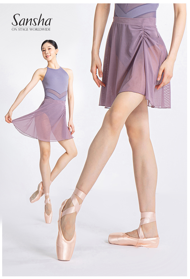 Sansha三沙舞蹈裙成人 芭蕾舞半身裙弹力网纱A字裙练功短裙中国舞