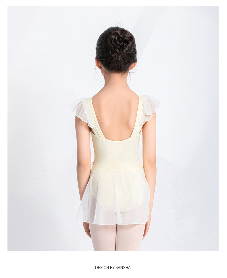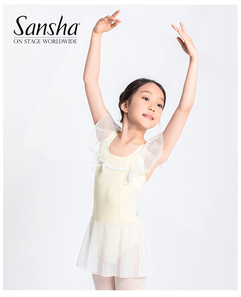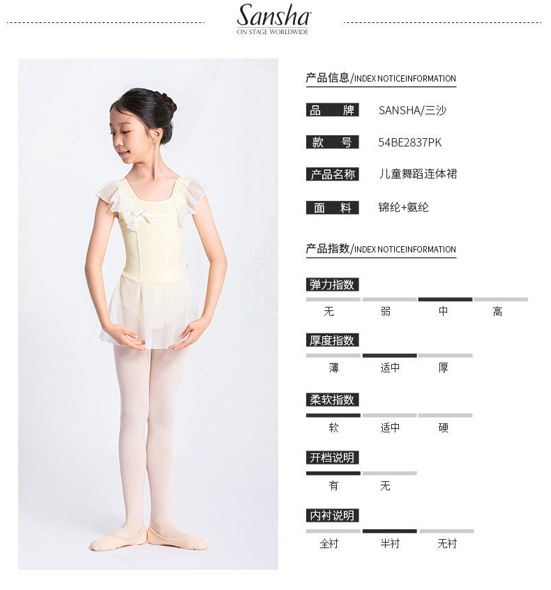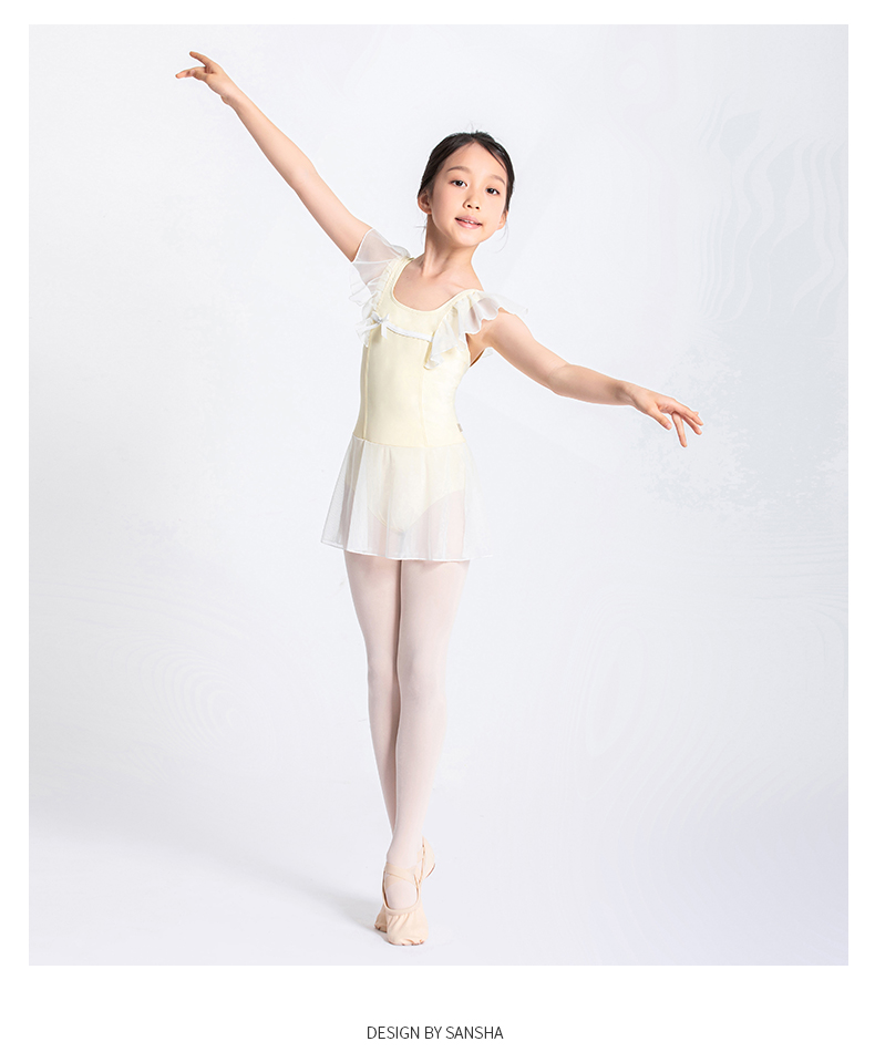 Sansha 三沙儿童舞蹈服 芭蕾舞连体裙中国舞飞袖练功服冰凉牛奶丝