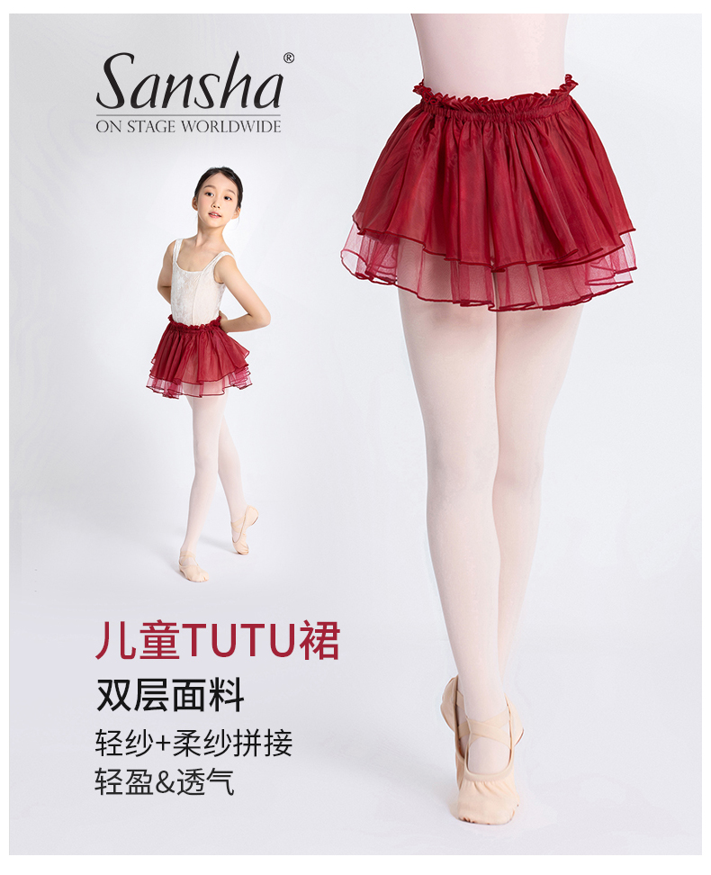 Sansha 三沙儿童舞蹈裙女 芭蕾舞半身裙TUTU蓬蓬裙A字短裙练功裙