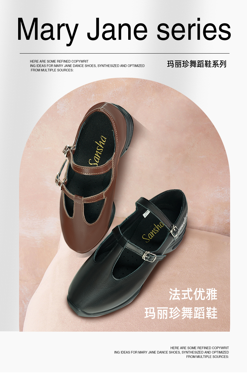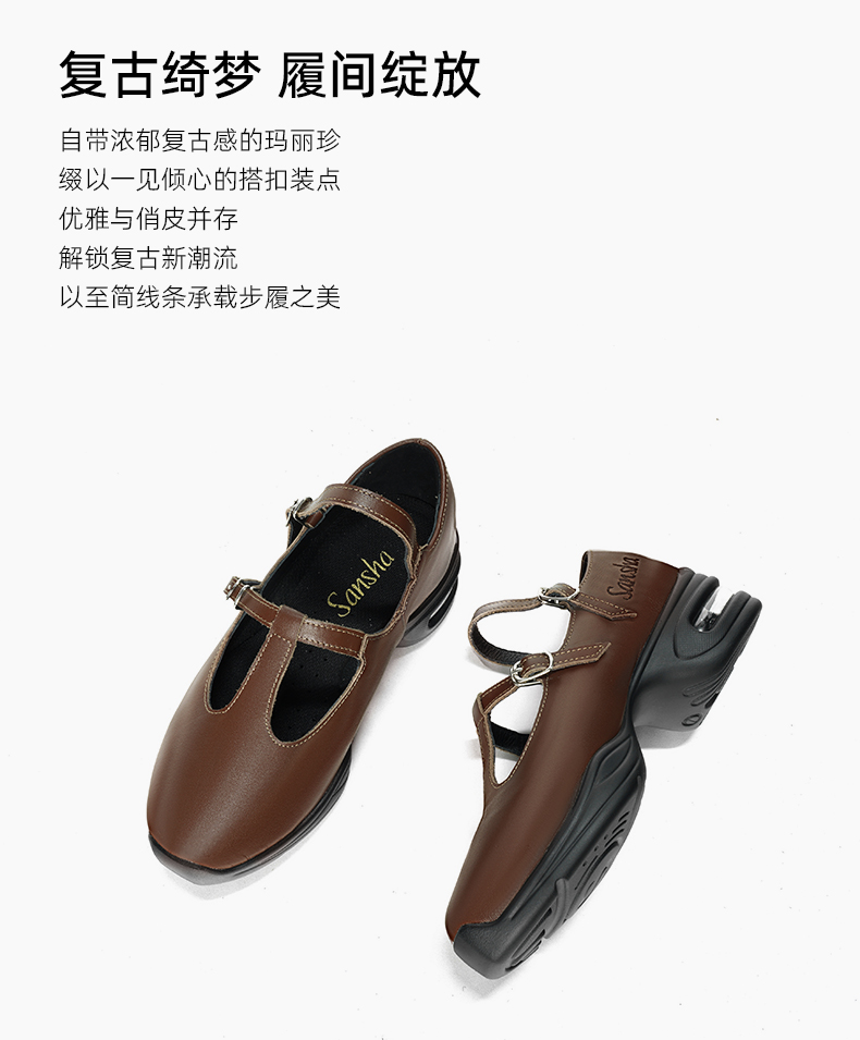 Sansha 三沙广场舞蹈鞋女 运动舞鞋牛皮现代舞玛丽珍单鞋芭蕾风鞋